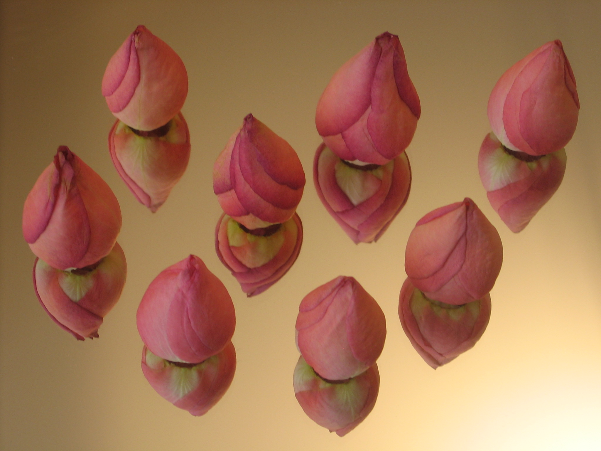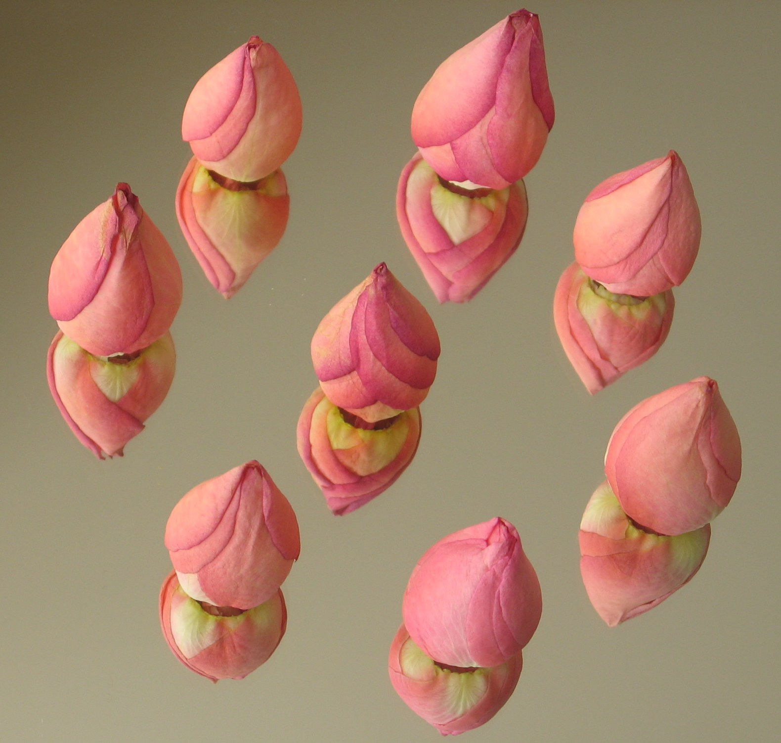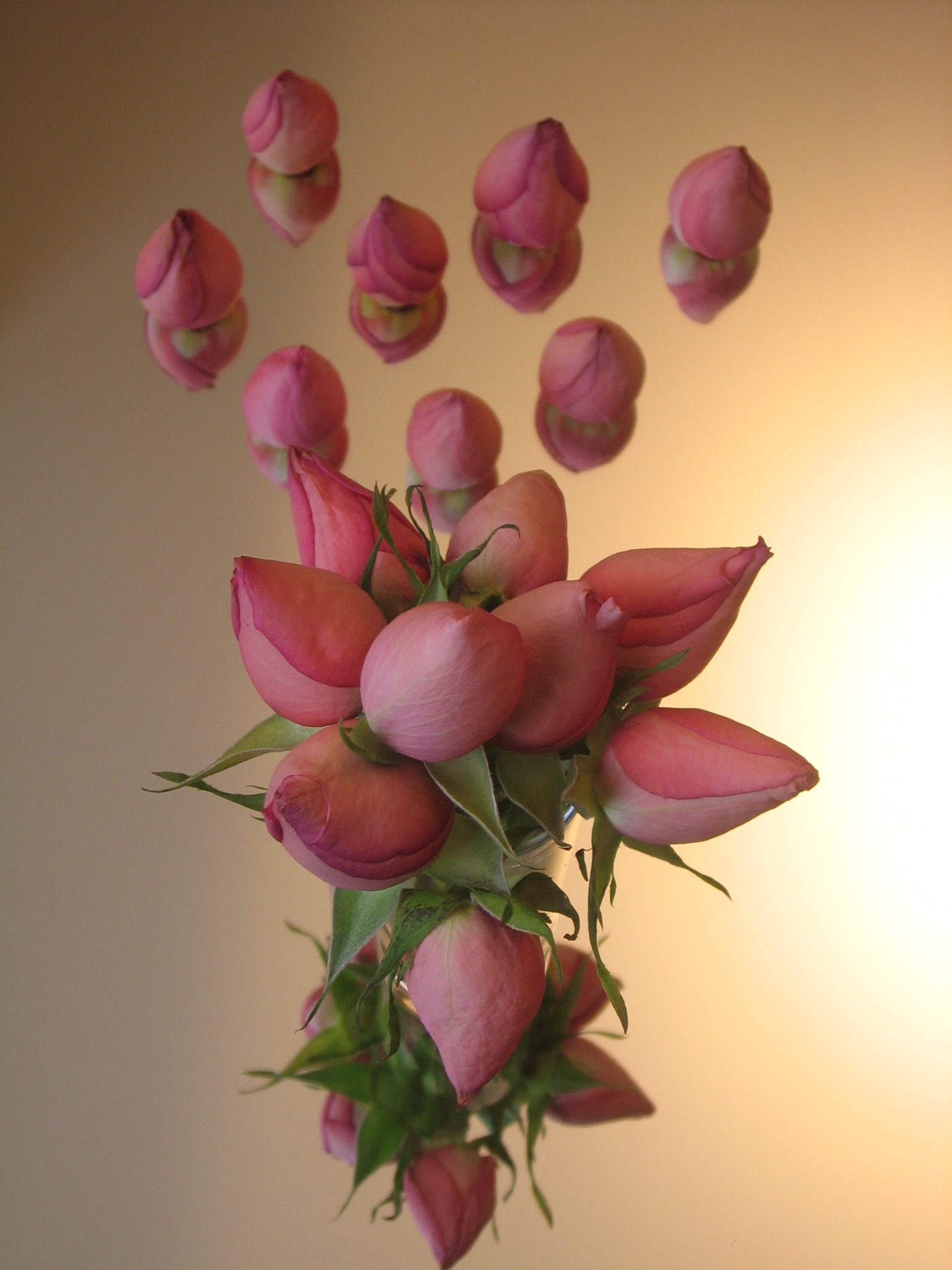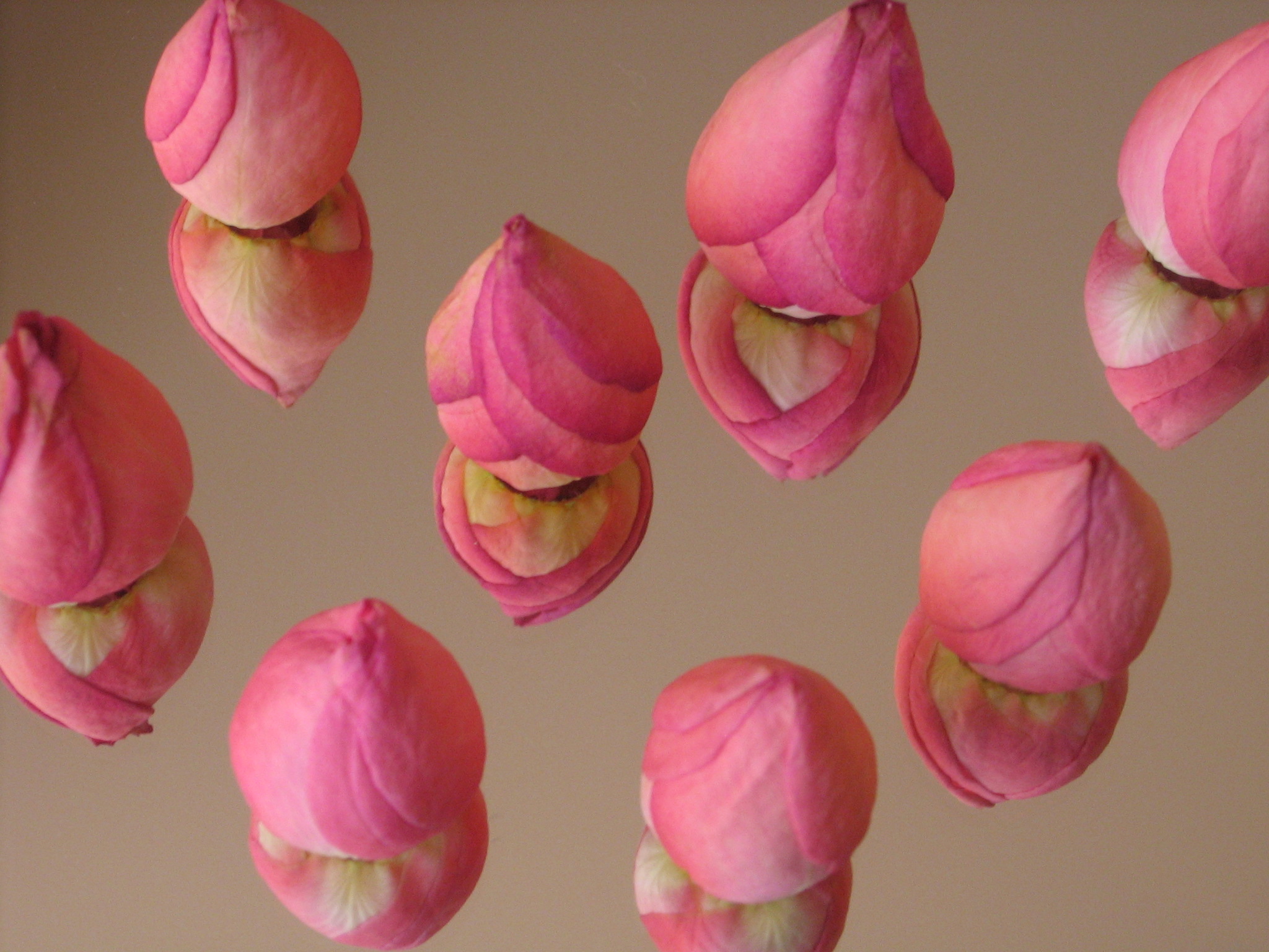 Levée tôt pour voir mieux le jour venir au monde, je contemple le ciel devenu bleu et rose. De très petits nuages, par le dessous s’empourprent, et comme intimidés peu à peu s’évaporent.